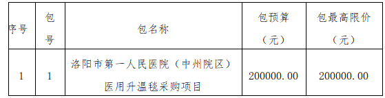 ******醫(yī)院(中州院區(qū))醫(yī)用升溫毯采購項目,擬采購醫(yī)用升溫毯4臺(具體內(nèi)容、數(shù)量及技術(shù)參數(shù)要求詳見采購需求);