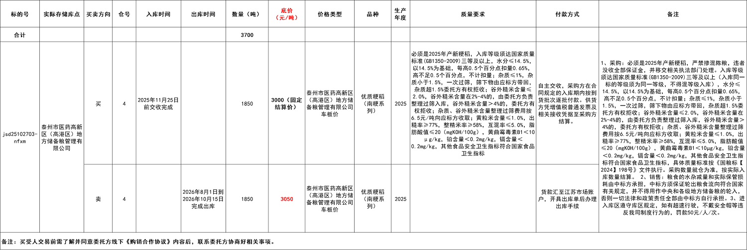 (一)本次交易采用國家糧食交易平臺購銷合作雙向競價功能實現(xiàn),交易規(guī)則以本公告公示為準,實際系統(tǒng)操作解釋權歸江蘇市場所有。