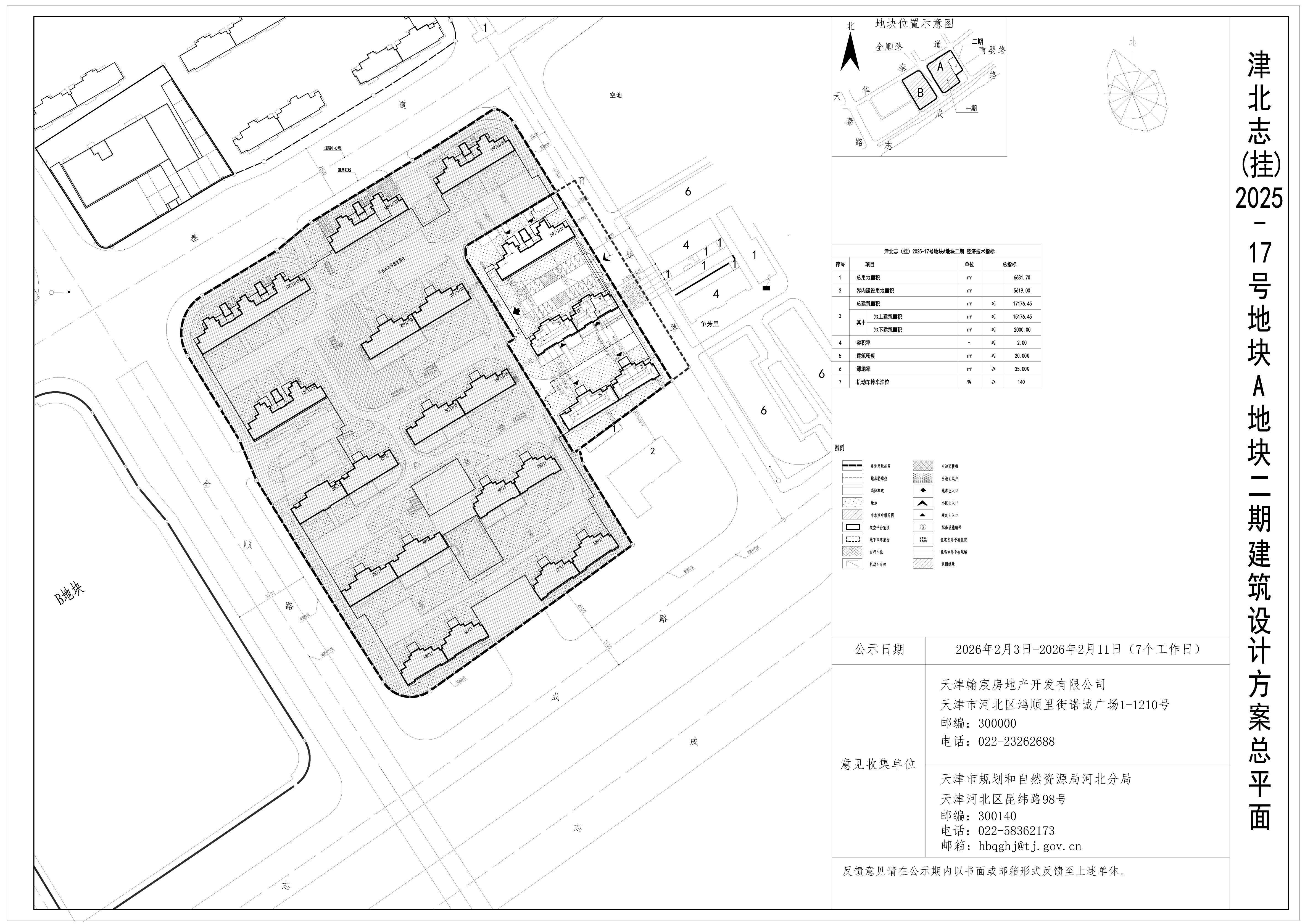 依據(jù)《中華人民共和國(guó)城鄉(xiāng)規(guī)劃法》的有關(guān)要求,現(xiàn)將津北志(掛)2025-17號(hào)地塊A地塊二期項(xiàng)目建筑設(shè)計(jì)方案總平面圖進(jìn)行公示,公示期為7個(gè)工作日。