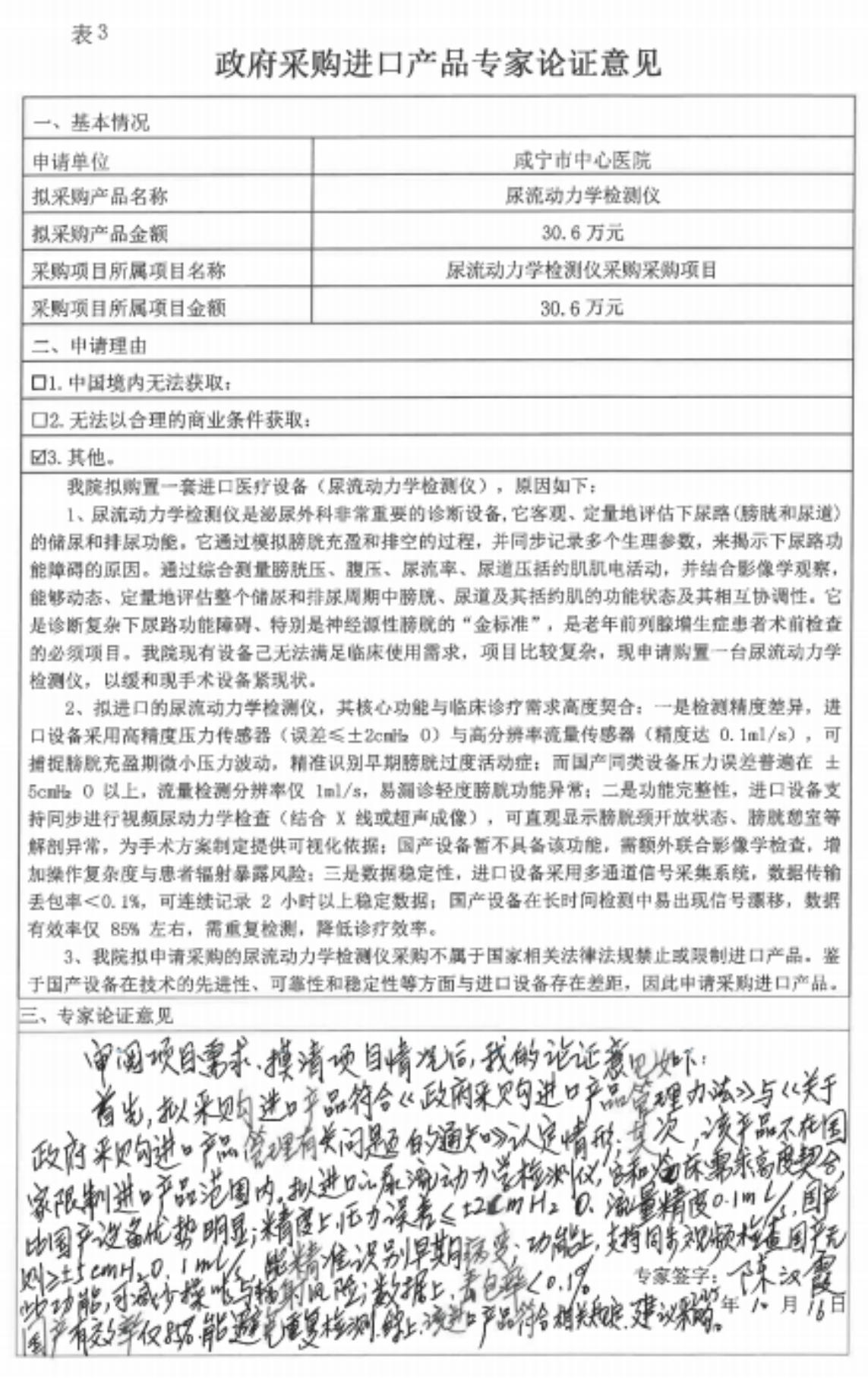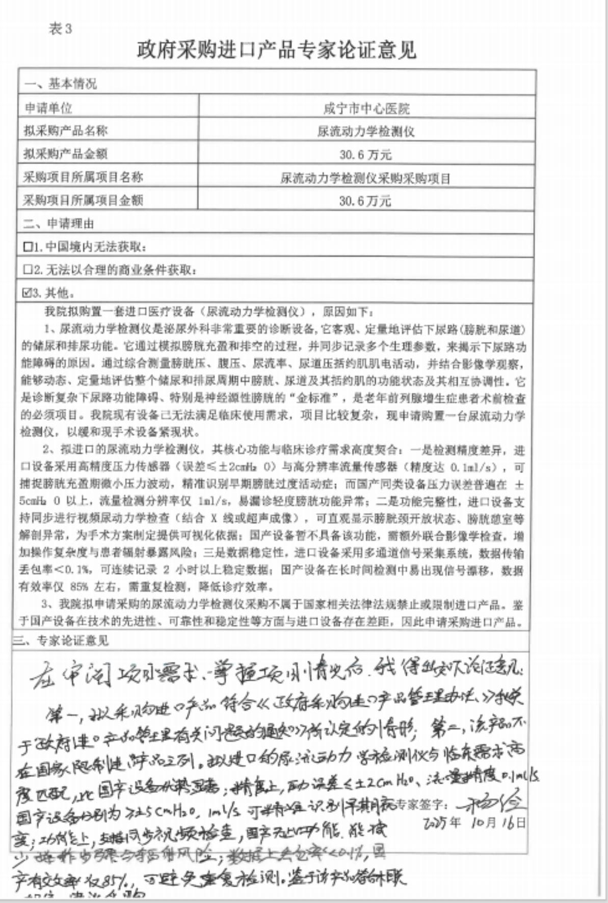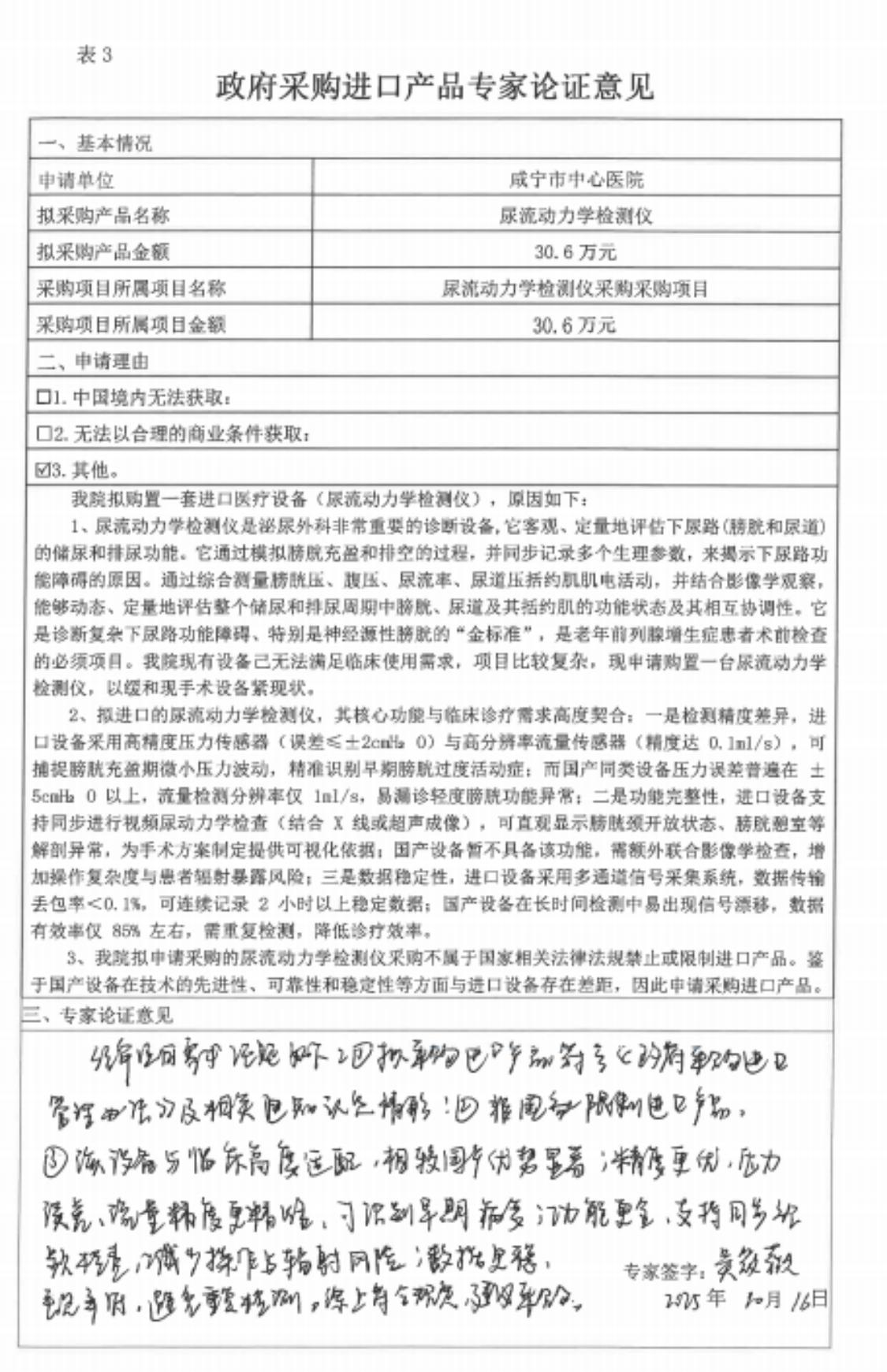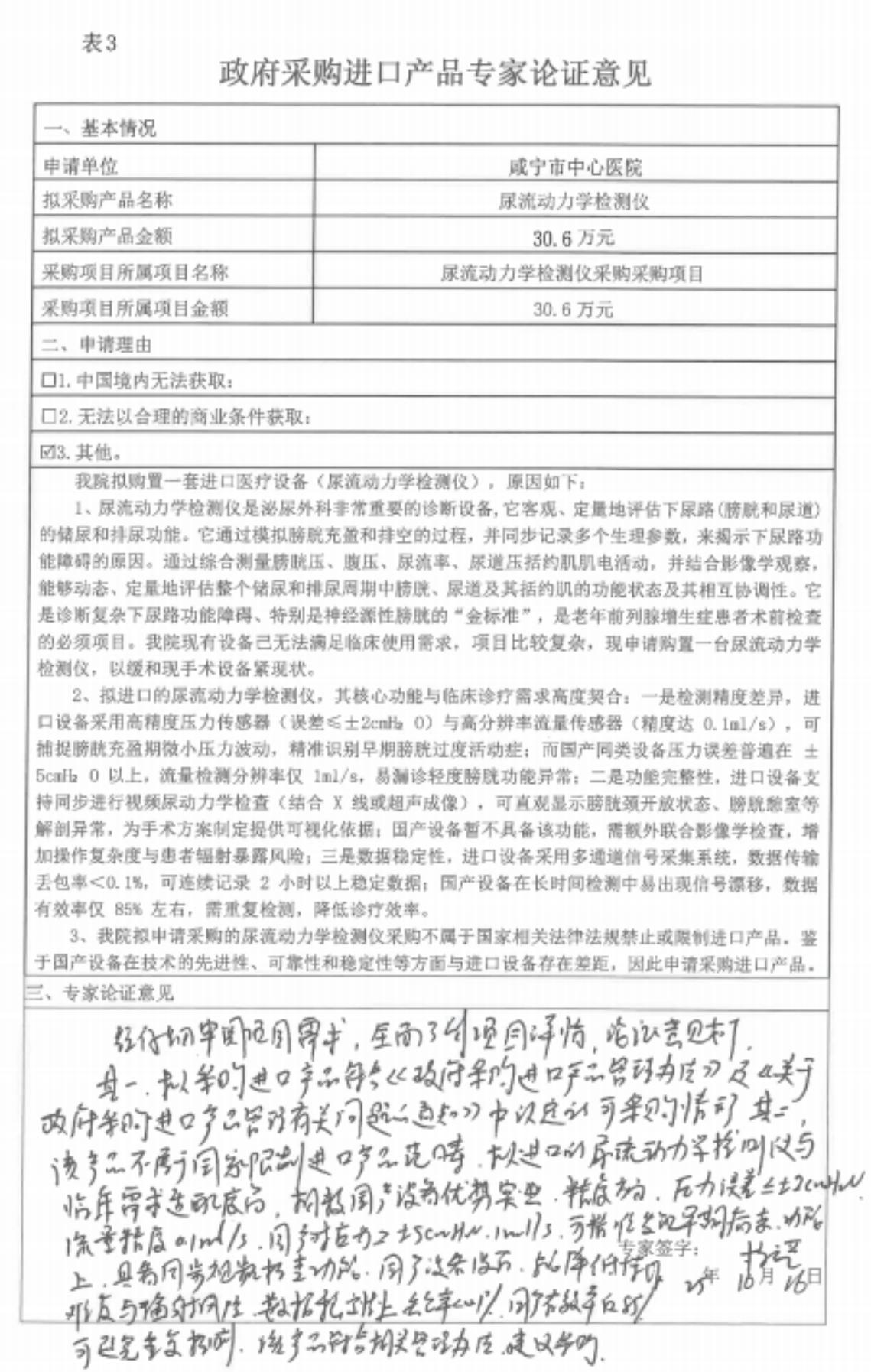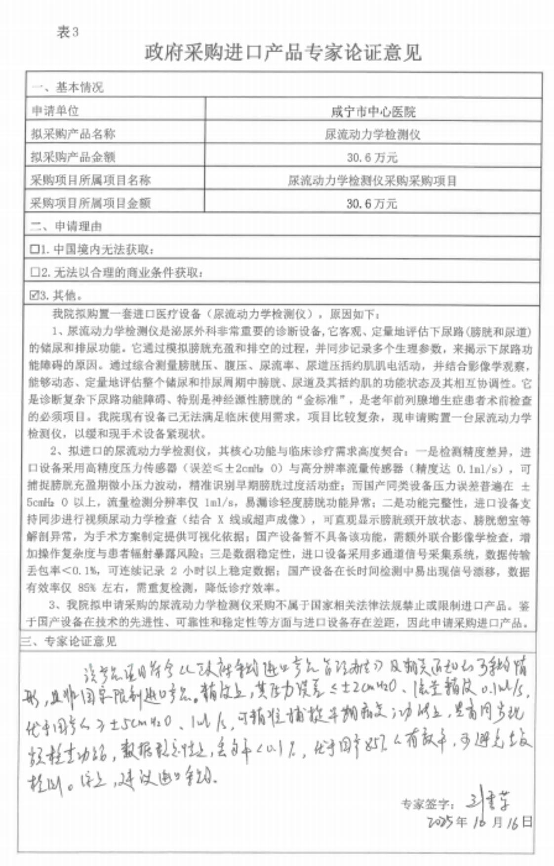 ******醫(yī)院尿流動力學檢測儀采購項目進口產(chǎn)品論證公示;