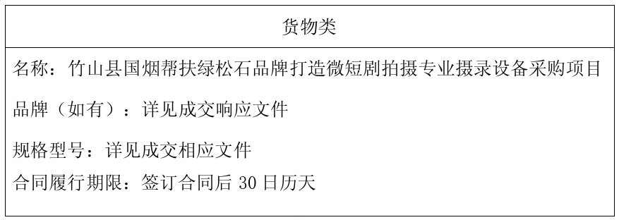 竹山縣國(guó)煙幫扶綠松石品牌打造微短劇拍攝專(zhuān)業(yè)攝錄設(shè)備采購(gòu)項(xiàng)目